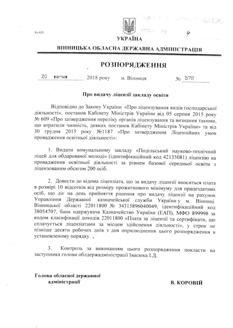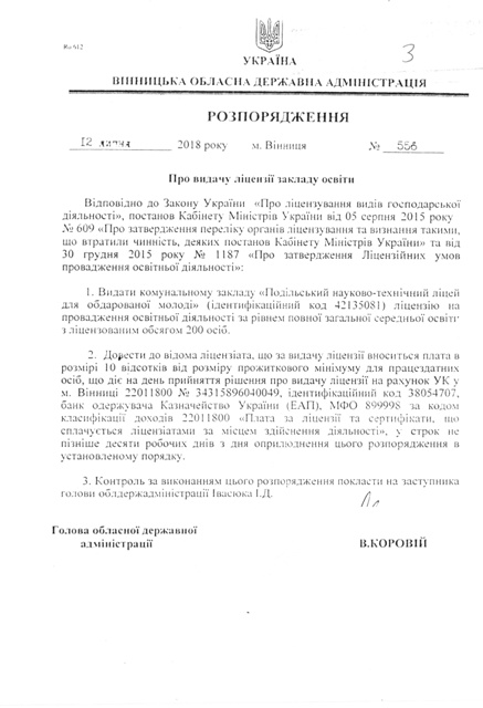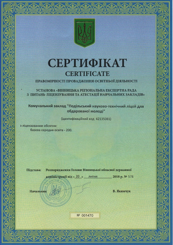 Administrator Uncategorised 07 квітня 2025 Перегляди: 557 Ліцензії на впровадження освітньої діяльності Попередня стаття: Комплексна програма розвитку закладу (стратегія розвитку) Попередня Наступна стаття: Статут закладу Наступна